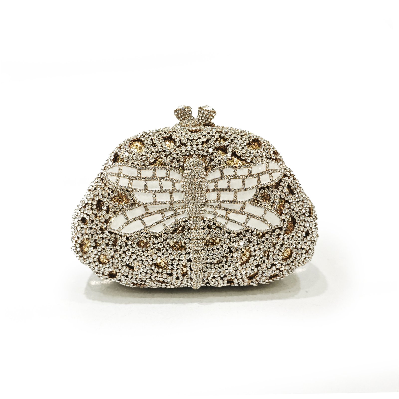 Crystal Rhinestone Evening Clutch Bag — an exquisite crystal clutch bag, meticulously handcrafted with sparkling rhinestones and intricate hollow-out metalwork.
