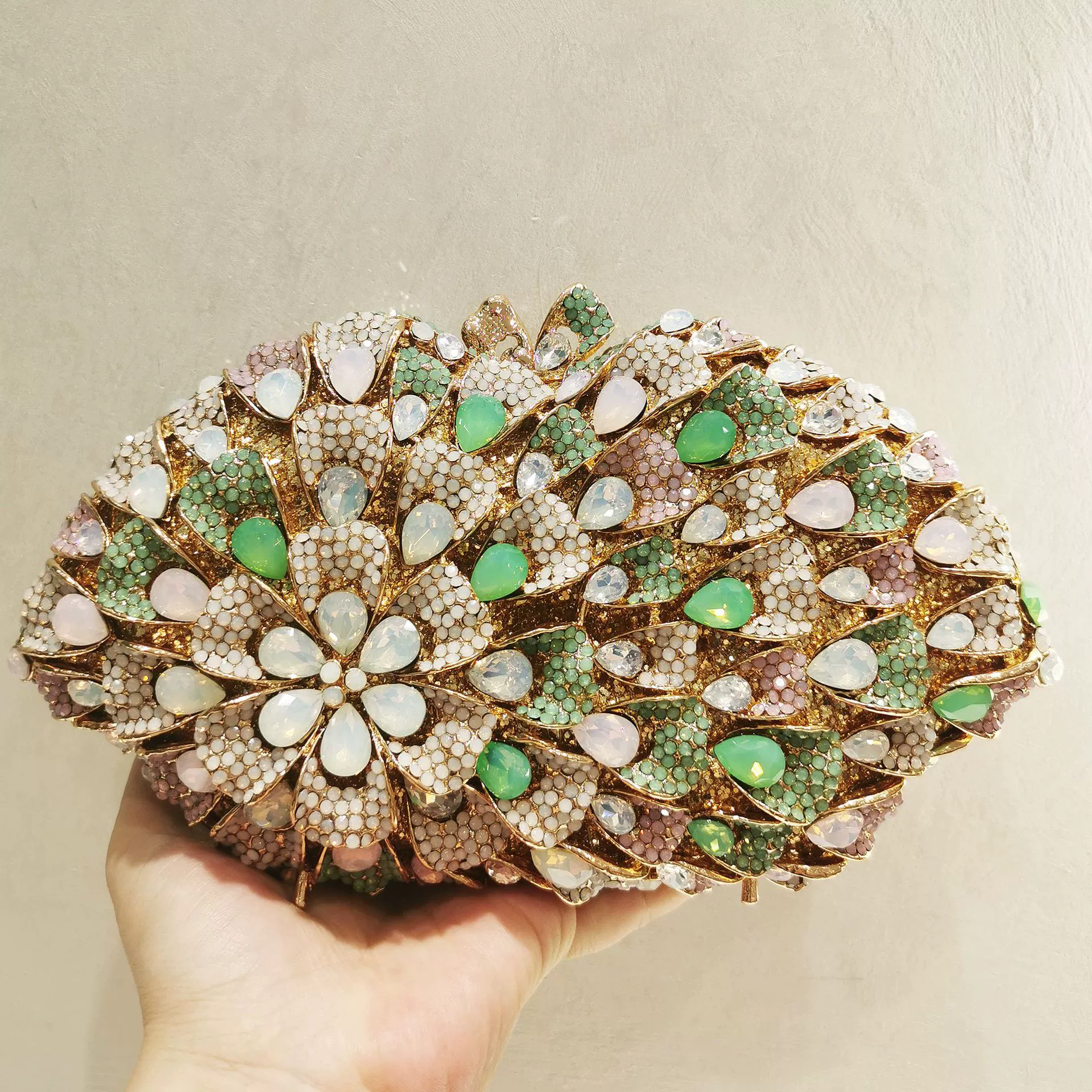 Perfect for weddings, galas, evening parties, and special occasions. This stunning piece doubles as both a functional bag and a work of art. Comes with a detachable chain strap for shoulder or crossbody wear.