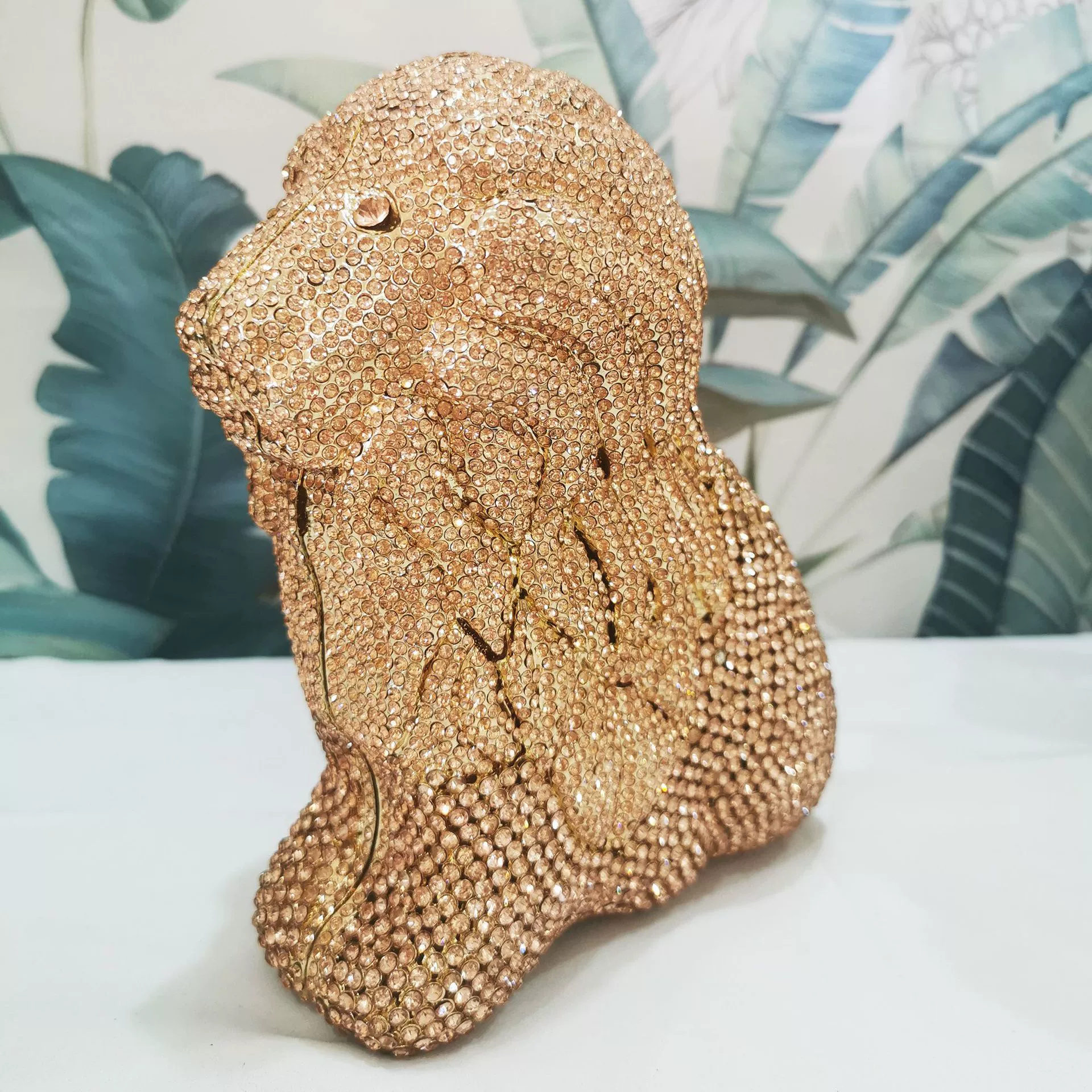 Perfect for weddings, galas, evening parties, and special occasions. This stunning piece doubles as both a functional bag and a work of art. Comes with a detachable chain strap for shoulder or crossbody wear.