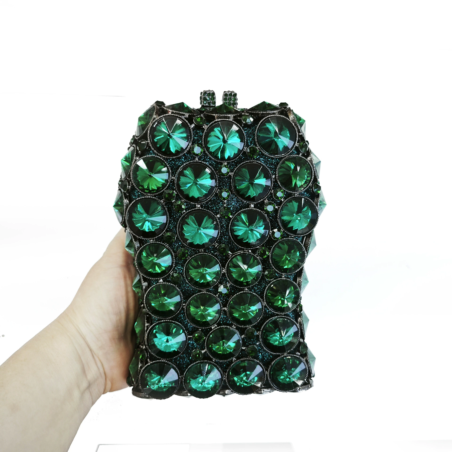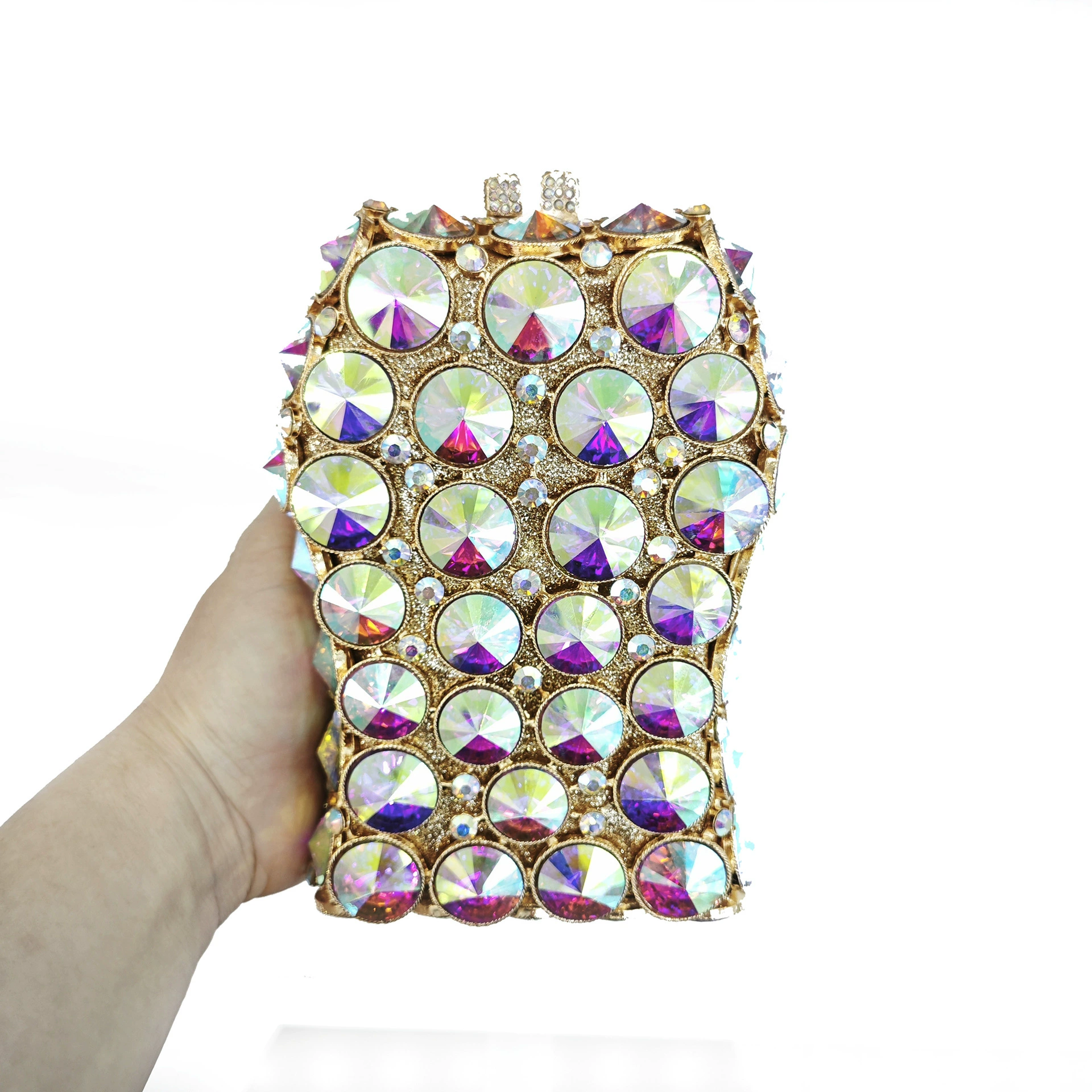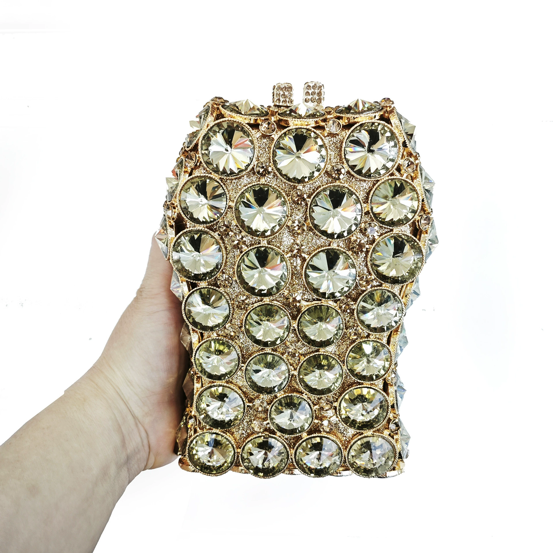 Hollow-out Rhinestone Evening Clutch Bag — an exquisite crystal clutch bag, meticulously handcrafted with sparkling rhinestones and intricate hollow-out metalwork.
