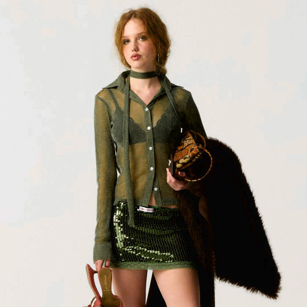 Long Sleeve Tie/Wrap Sheer Blouse — a stylish and trendy piece designed for the modern woman who loves to stand out.