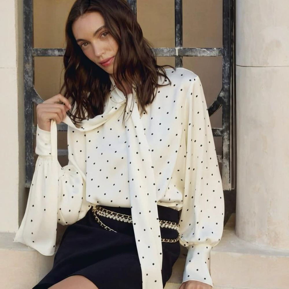 Polka Dot Sexy Slim Fit Lace-Up Blouse — a stylish and trendy piece designed for the modern woman who loves to stand out.