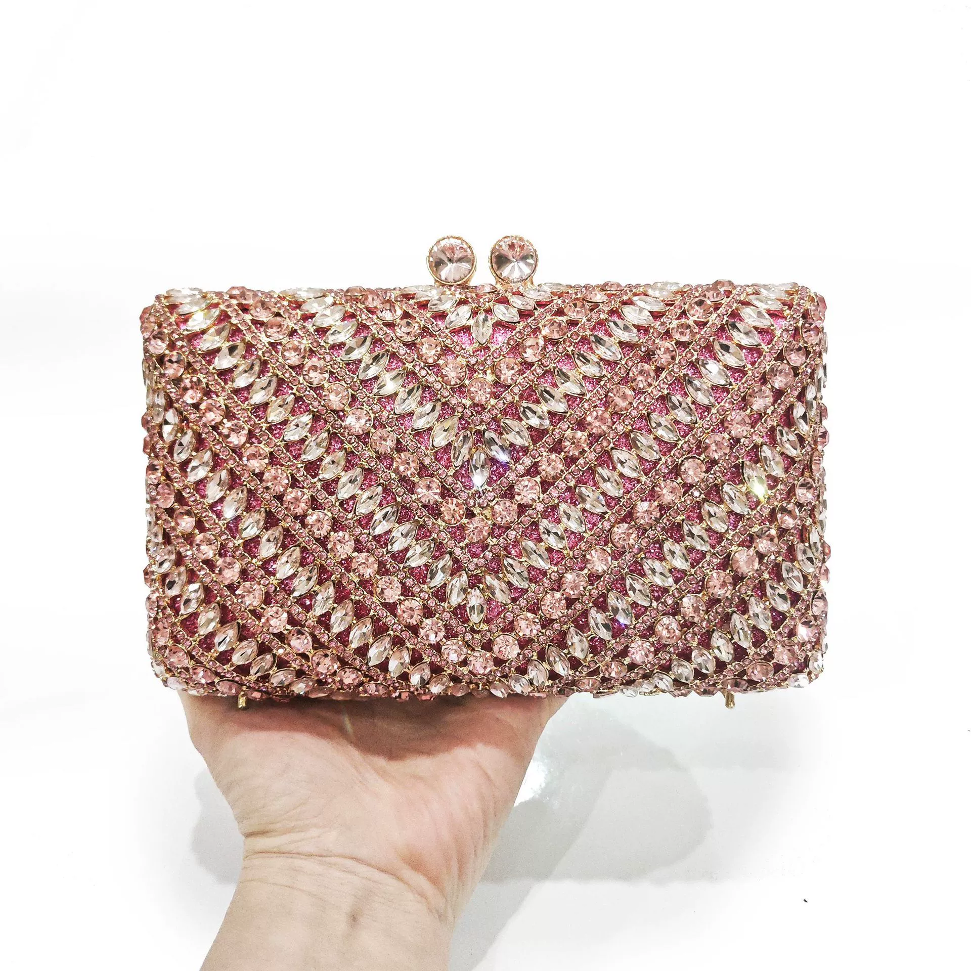 Rhinestone Evening Clutch Bag — an exquisite crystal clutch bag, meticulously handcrafted with sparkling rhinestones and intricate hollow-out metalwork.
