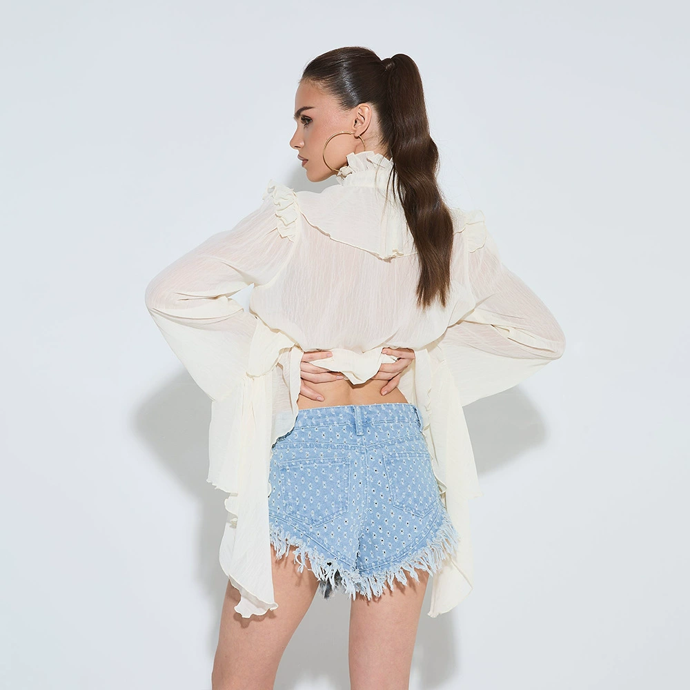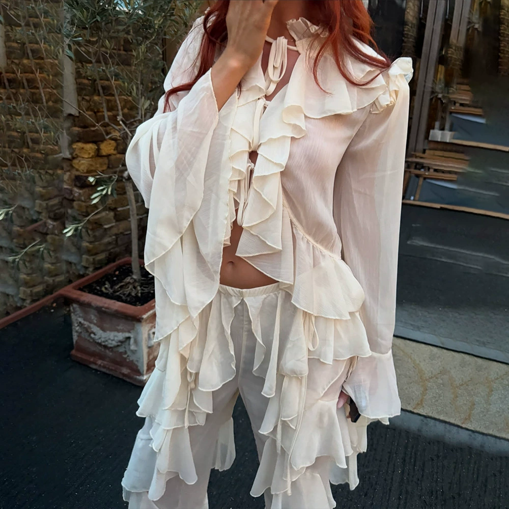 Sexy Long Sleeve Chiffon Lace-Up T-Shirt — a stylish and trendy piece designed for the modern woman who loves to stand out.