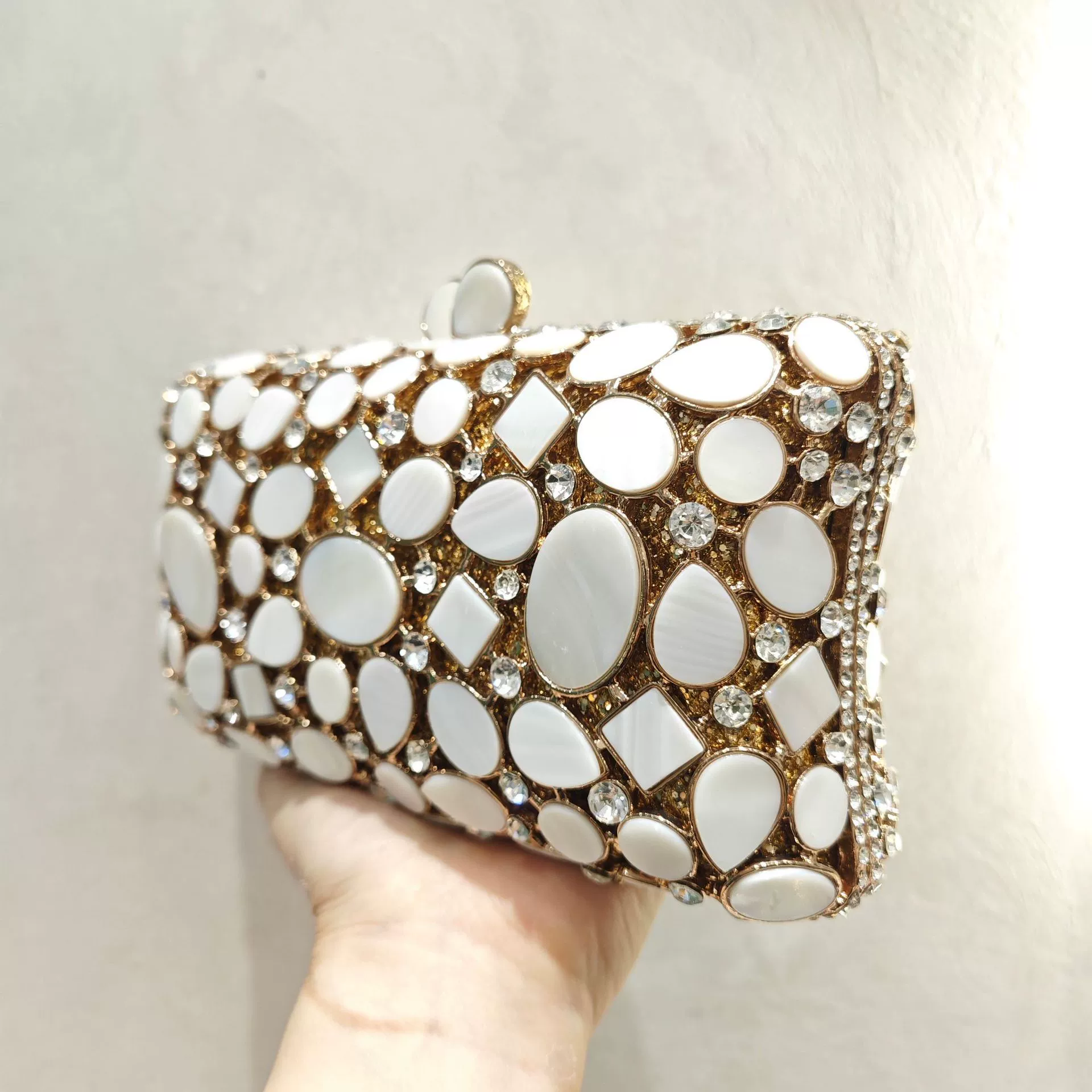 Perfect for weddings, galas, evening parties, and special occasions. This stunning piece doubles as both a functional bag and a work of art. Comes with a detachable chain strap for shoulder or crossbody wear.