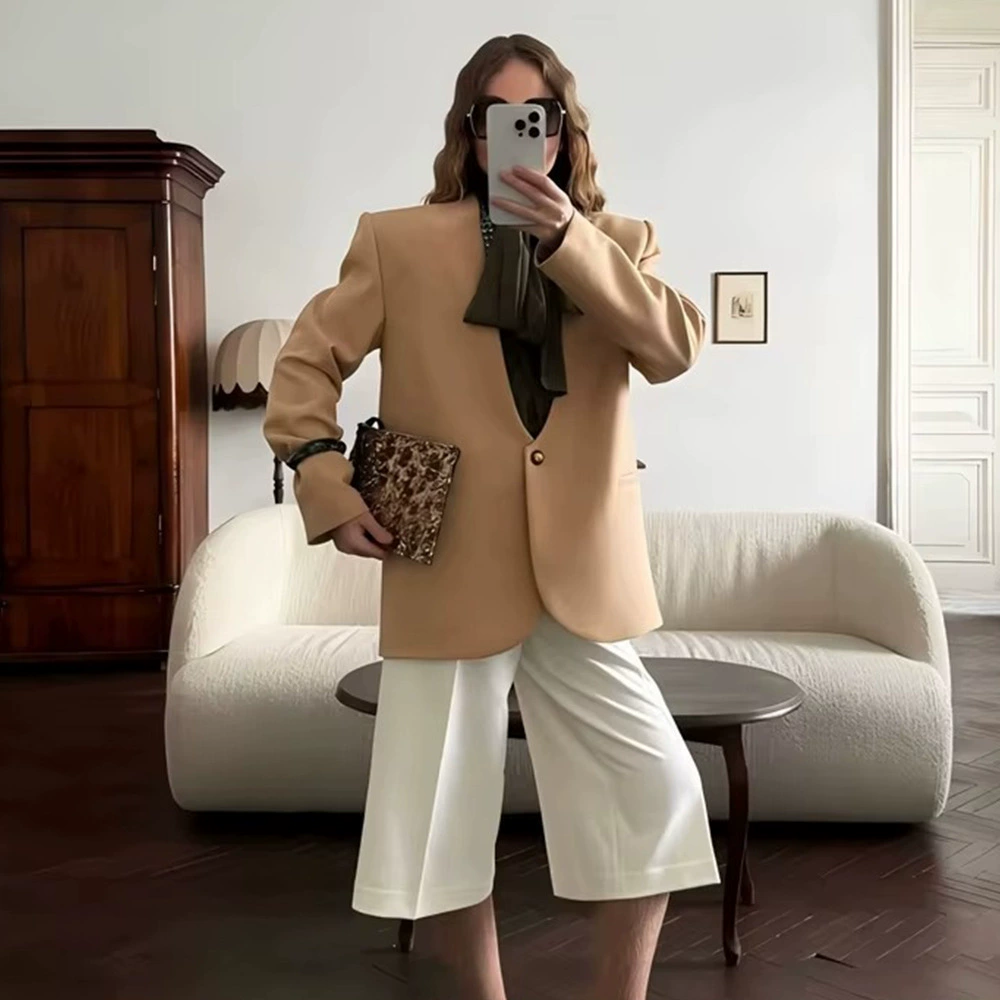 V-Neck Long Sleeve Solid Color Loose Fit Blazer — a stylish and trendy piece designed for the modern woman who loves to stand out.